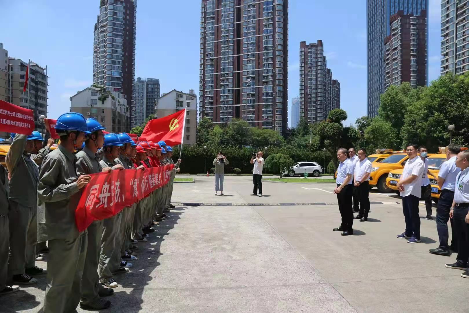 7月22日中午,由国网武汉供电公司紧急抽调的43名供电员工,作为国网湖北电力第三批应急队伍,出征前往河南。出征仪式上,国网武汉供电公司总经理李新国代表公司欢送驰援人员,勉励他们发扬抗疫精神、互助精神,展现鄂电铁军和武汉铁军风采,让“共产党员服务队”旗帜在防汛一线高高飘扬。