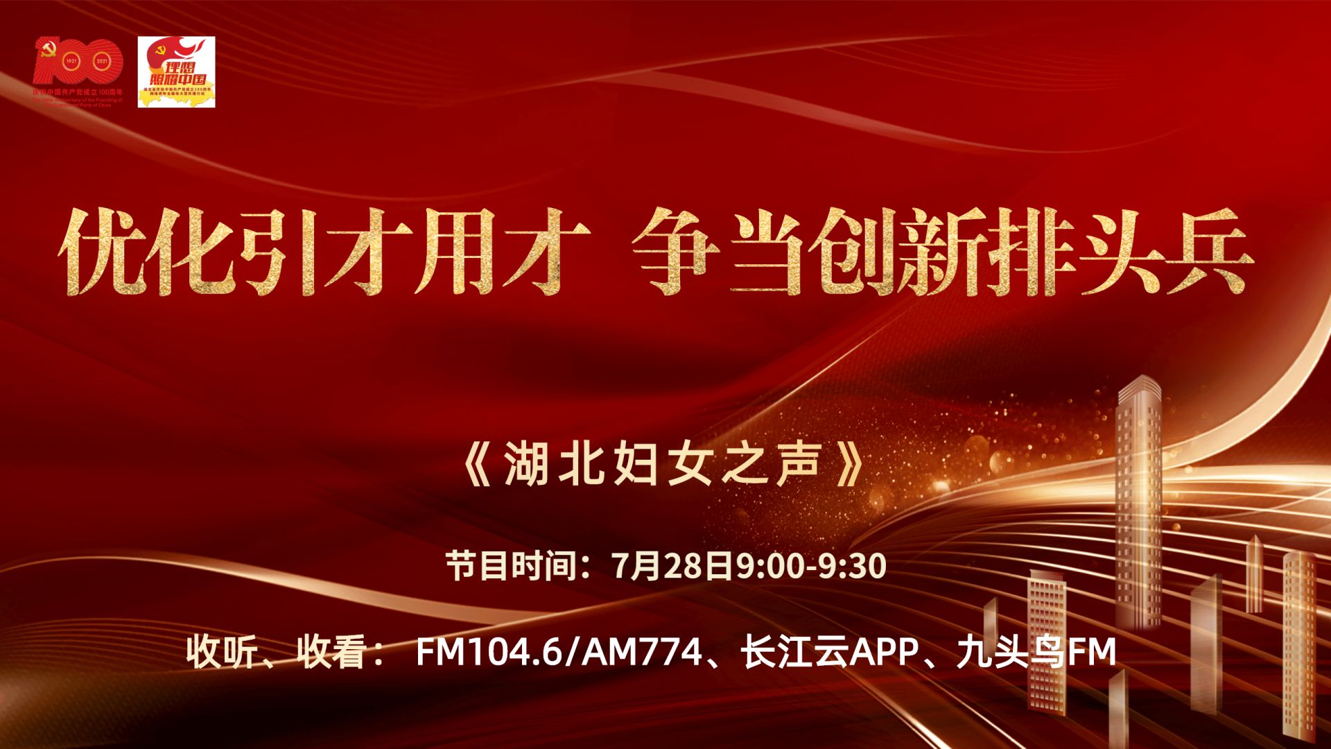 7月28日9:00—9:30,湖北省妇女人才促进会第四届理事会副会长、武汉大学二级教授、博士生导师、武汉大学人力资源管理研究中心主任李燕萍将做客《湖北妇女之声》节目,分享湖北妇女人才参与经济建设的重要意义、发展方向和发展路径,敬请关注!