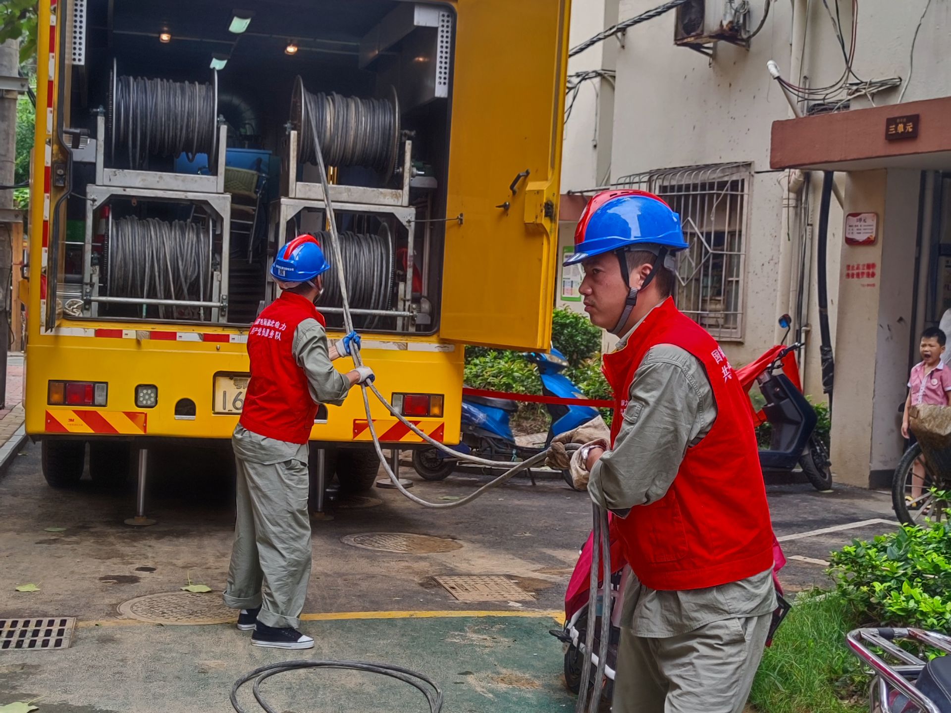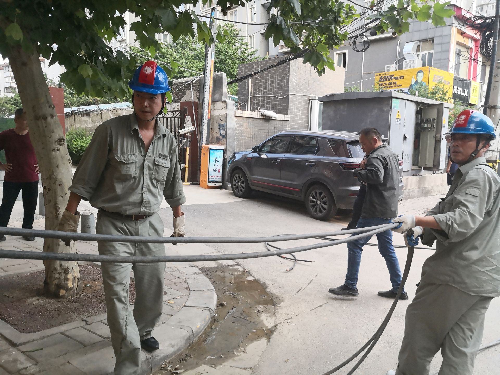 杨忠在现场勘察后,在小区低压开关柜里找到了发电车接入点,刘旋与黄国华则在发电车旁布置现场、展放电缆。虽然是退伍军人,刘旋将4根50米长的电缆拖到接入点后,仍感觉气喘吁吁。