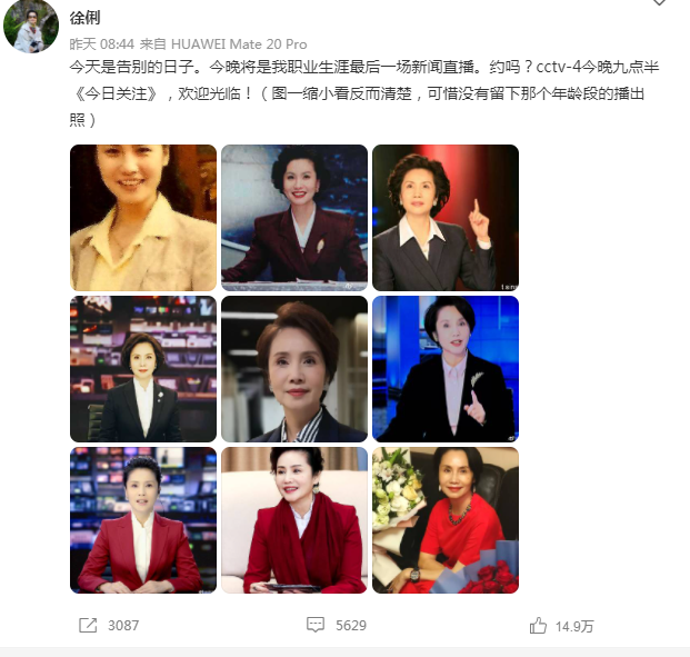 昨晚到现在,很多人在社交媒体刷一条视频,祝福退休的央视主持人徐俐。虽然大家电视新闻看得少了,但不妨碍对一位陪伴我们30年的新闻主播,表达留恋和不舍。