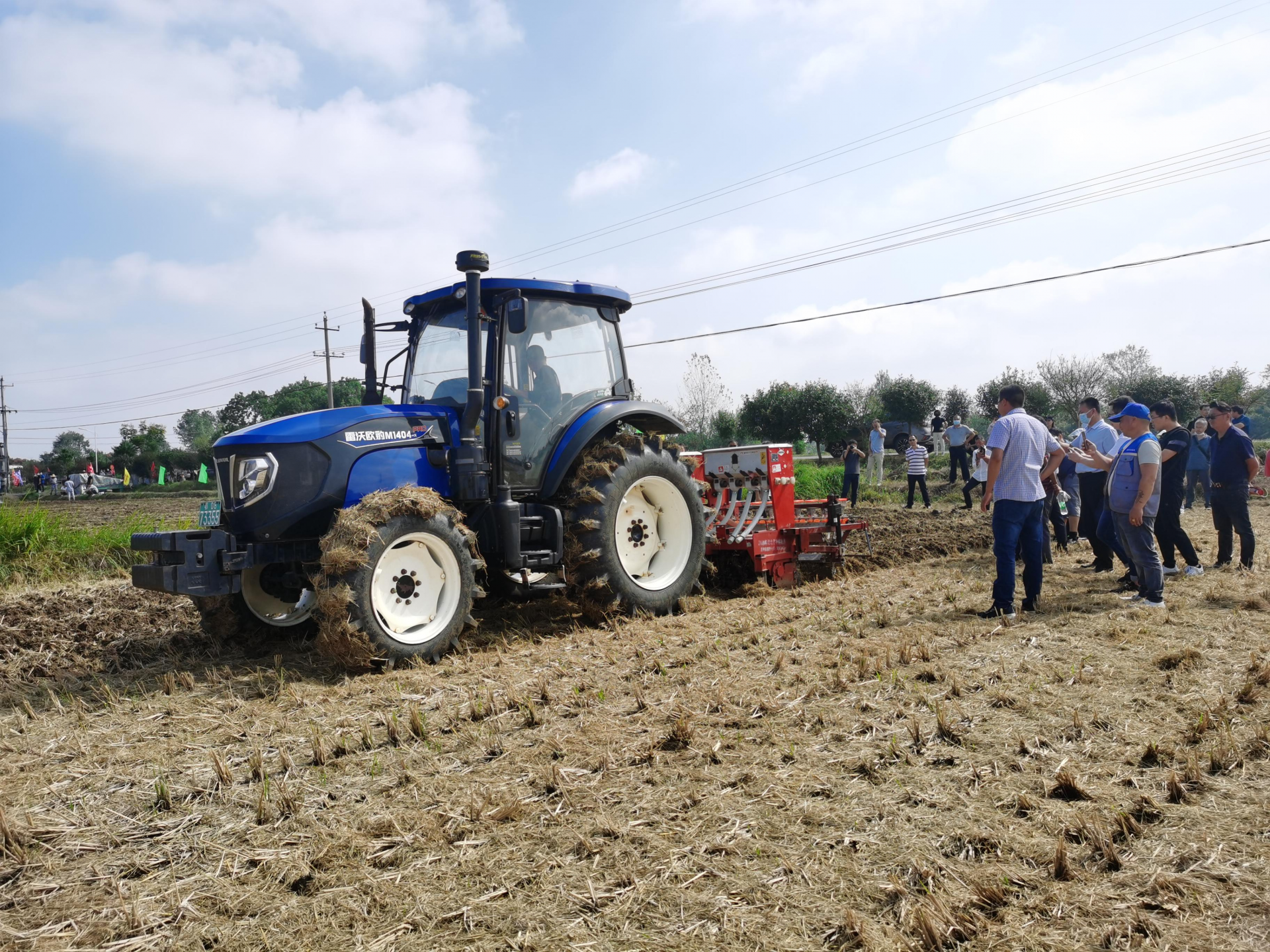 油菜微垄直播机引得众多农户围观