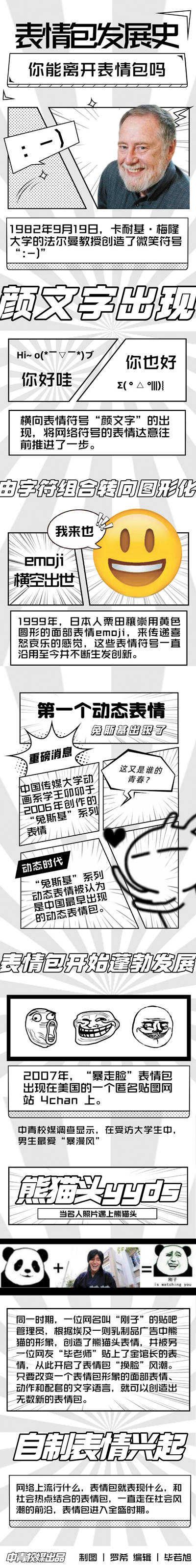 今年大三的吴亚坤也是一位表情包“资深用户”。“最早可以追溯到中学时代,到现在已经有10多个年头了。”回忆起表情包使用史,吴亚坤表示自己见证了表情包普及化、多元化的发展历程。“印象中3G时代的表情包加载特别慢,4G出现后加载速度就快了,使用表情包的频率也越来越高。”在她看来,互联网技术的更新迭代,为表情包的变革提供了基础。