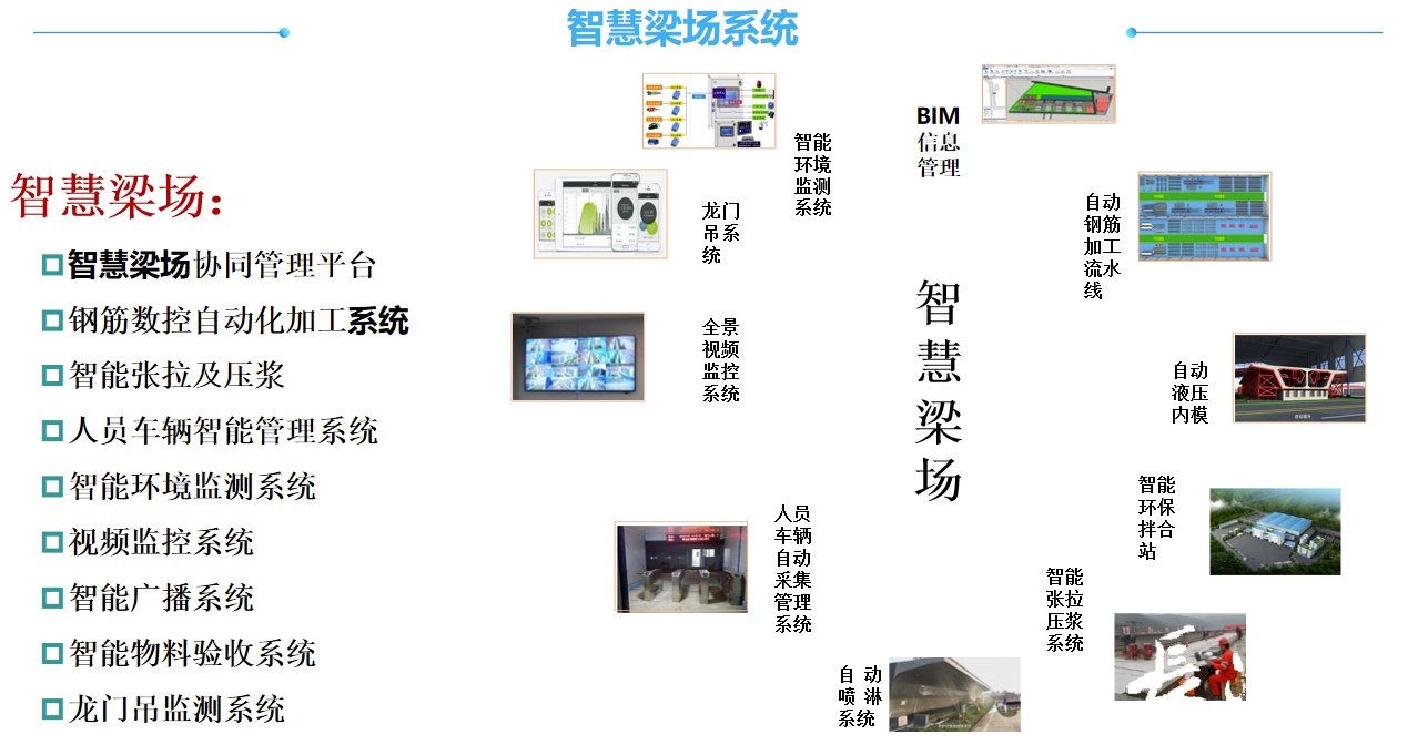 “智慧梁场”采用工厂化流水线生产模式,应用液压模板、全自动行走台座、全封闭高温蒸养等先进技术,通过BIM信息化技术建设施工管理、自动加工、监控监测等管理系统模块,可对全生产要素进行数字化、信息化处理,实现数据自动上传下达,资源高效调度,真正实现梁场生产“智慧化”。