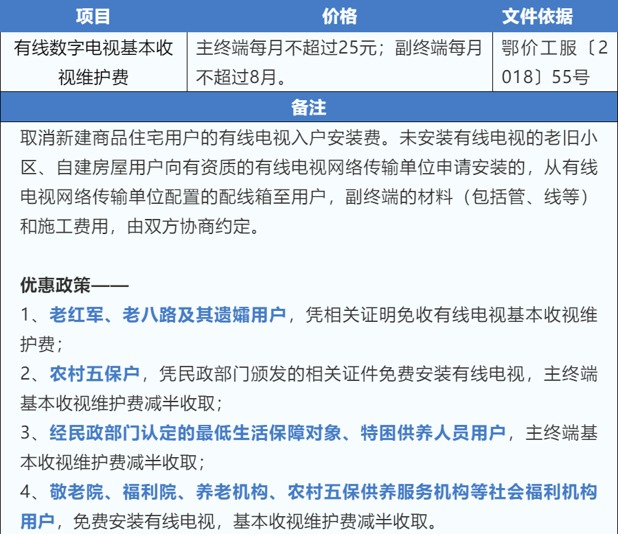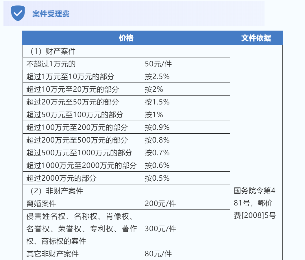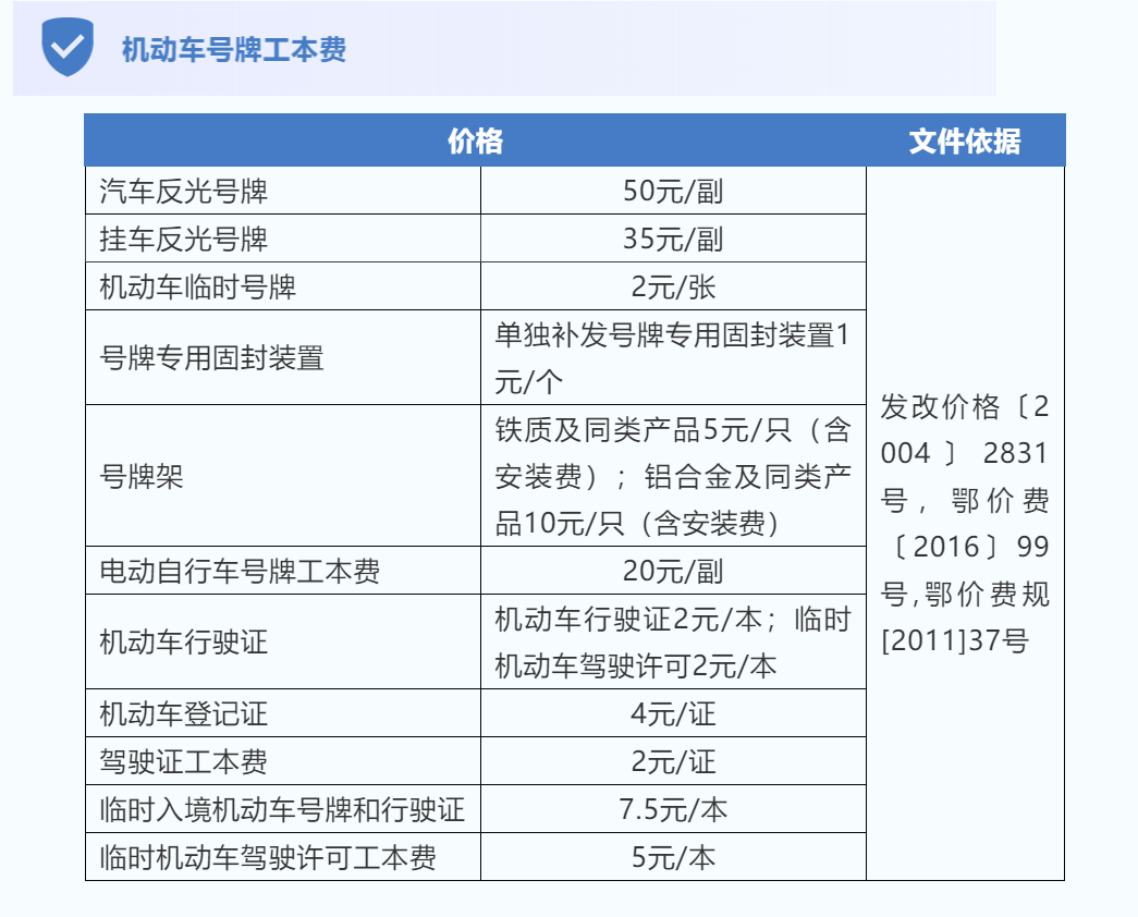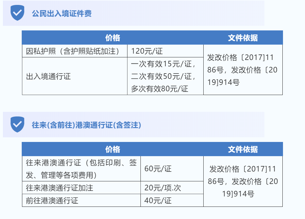 各类收费标准