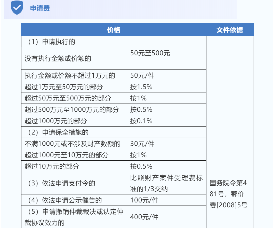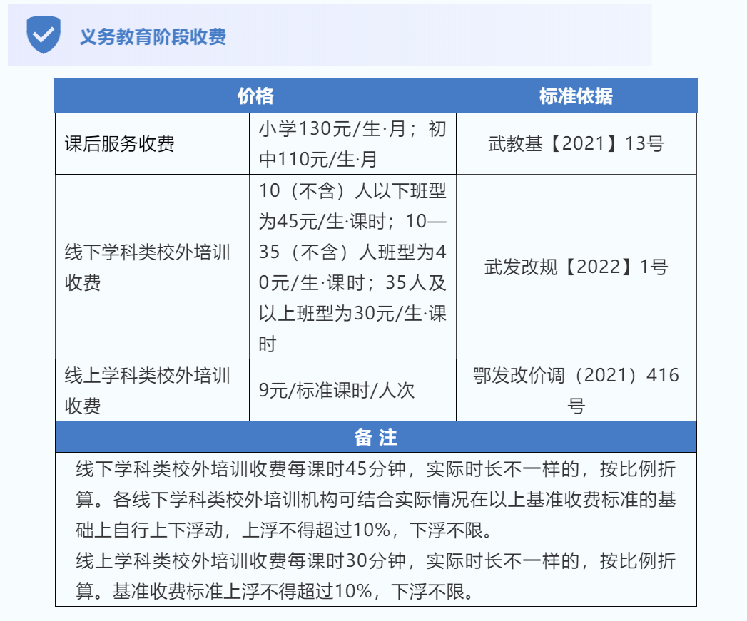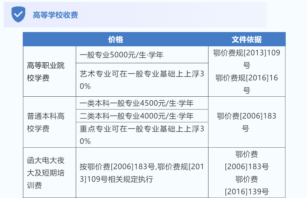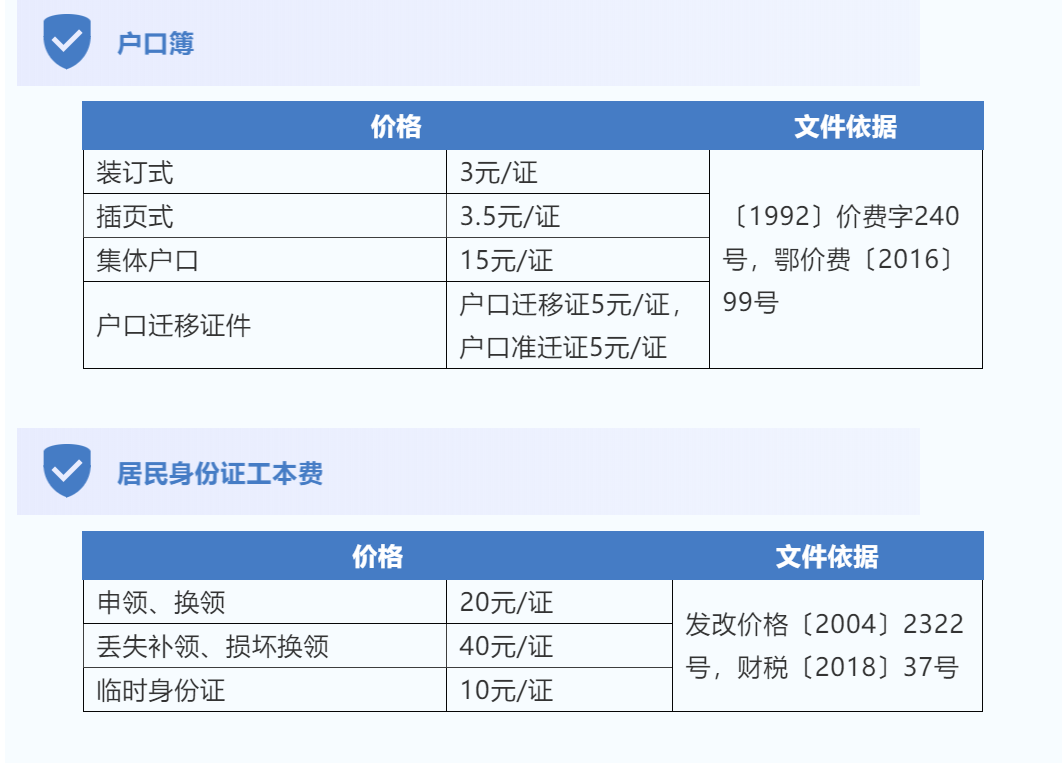 各类收费标准