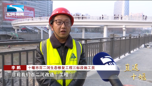 十堰市百二河生态修复工程三标段施工员 李鹏:“目前我们百二河改造工程靠东岸已经到了收尾阶段,我们正加班加点增加机械、工人,确保节前东岸全部打开,让十堰市民有一个旅游踏青的去处。”
