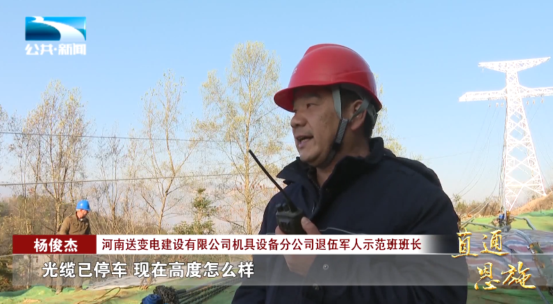 河南送变电建设有限公司机具设备分公司退伍军人示范班班长 杨俊杰:“光缆已停车,现在高度怎么样?”