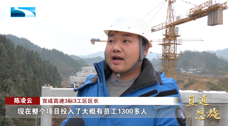 宣咸高速3标3工区区长 陈凌云:“现在整个项目投入了大概有员工1300多人,各类大型机械设备100多台,现在正处于大干快上的一个时期。”