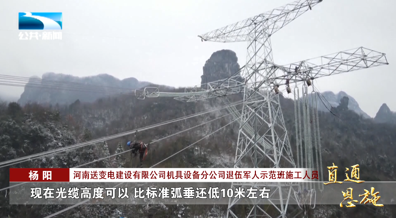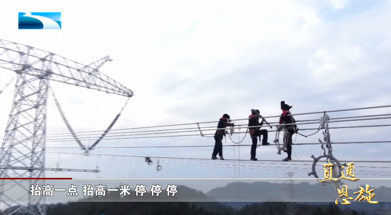 白鹤滩水电站是目前世界在建规模最大、技术难度最高的水电工程,计划在今年7月全面投产发电。作为电力外送大通道,白鹤滩---江苏±800千伏特高压直流输电工程有248公里在湖北恩施境内。近期,恩施段全面进入高海拔区域架线,每天有700多名“空中飞人”在加紧施工。