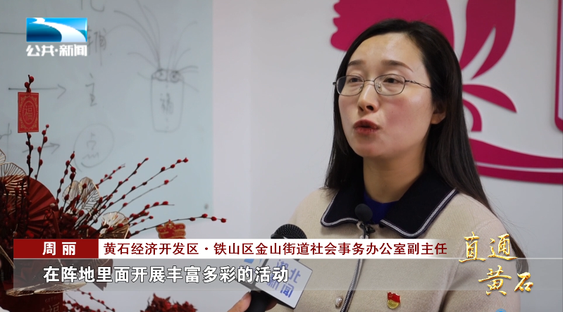黄石经济技术开发区·铁山区金山街道副书记、办事处主任 邹青:“我们金山街道的新时代文明实践所是以文化站为依托,以践行习近平新时代中国特色社会主义思想为主线,以助力我们开发区、铁山区奋进全国高质量百强园区为目标,通过探索‘志愿服务+党建引领’的工作模式,搭建了8大服务平台,组建了‘8+N’的志愿服务小队。我们开展了系列的群众文化活动,这里已经成为了我们居民群众的幸福家园。”