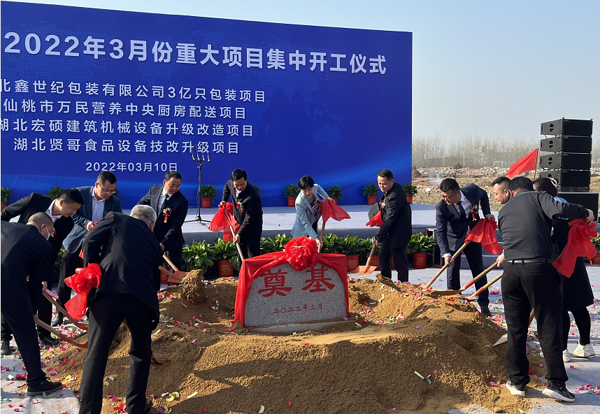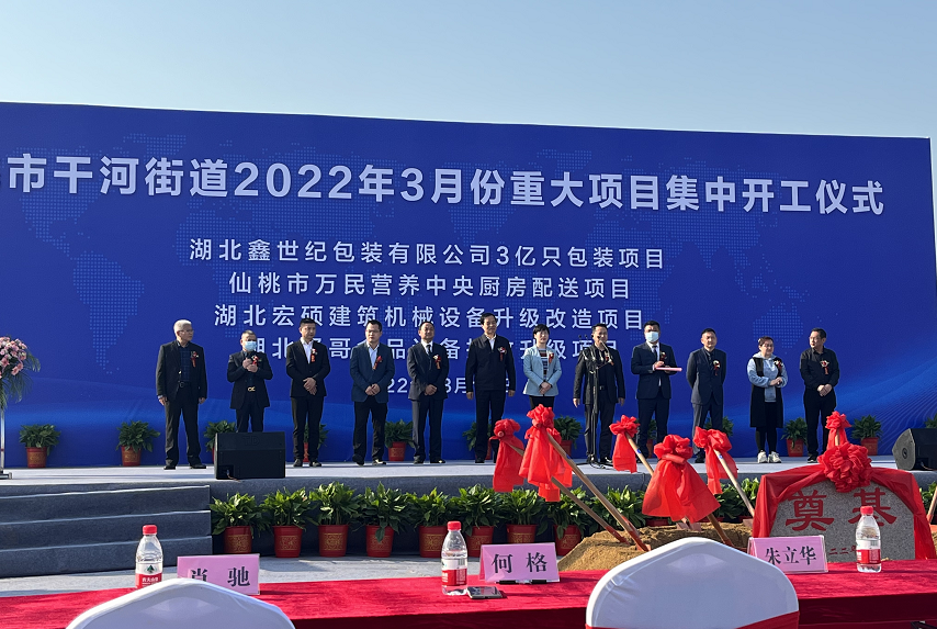 今天(10日)上午,仙桃市干河街道举行2022年3月份重大项目集中开工仪式,总投资6.5亿元,包括鑫世纪包装产品项目、万民智能化中央厨房配送中心项目、宏硕建筑机械设备生产线升级改造项目、贤哥食品高质量发展设备技改升级项目等4个项目。这些项目的建成和投产,是干河街道全力推进“双强”行动的重要体现,推动实现“挺进五十强、创成文明城”的发展目标。