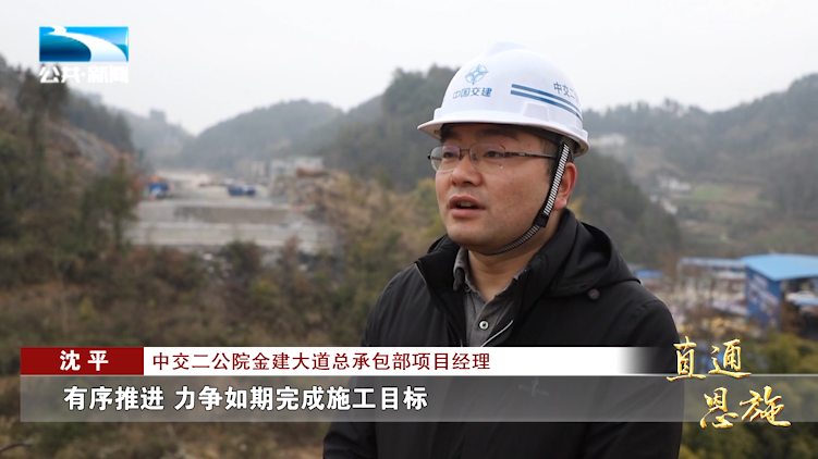 中交二公院金建大道总承包部项目经理 沈平:“目前我们正按照既定的施工计划,有序推进,力争如期完成施工目标,让金建大道尽早投入使用。”