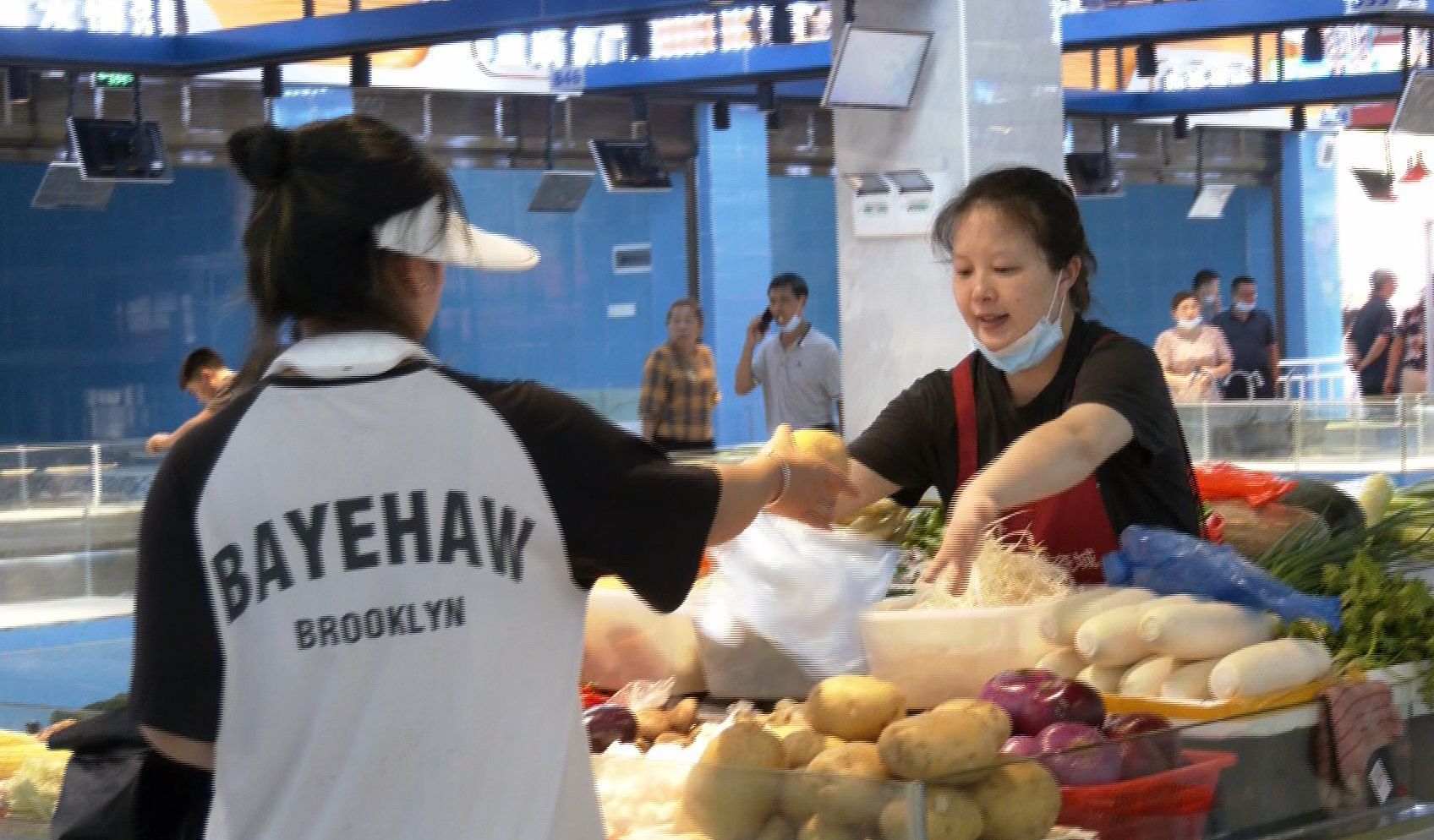 在香山农贸市场经营蔬菜摊位的王玲一家同时经营着城东、城西两处菜市场的摊位,试营业当天,前来买菜的市民络绎不绝,王玲热情地招呼顾客,道出了她多年总结的“生意经”。“首先卖得菜一定要新鲜,其次价格要实惠,然后就是服务态度要好,要热情对待每一位前来买菜的市民。”
