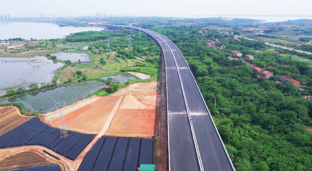 7月1日,武阳高速公路主体工程基本完工,进入配套工程施工阶段。站在武阳高速兴隆街与高新八路交互处的施工现场远眺,梁子湖万顷碧波之上,白鹤翩然起舞,青头潜鸭追逐戏水,一幅和谐相融的生态美卷。