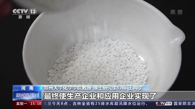 郑州大学化学学院教授 博士研究生导师 王向宇:这个关键的催化剂技术被国外垄断,他只以高昂的价格卖产品,不转让技术。我们为了实现自主创新,必须进行自主研发。在生产过程中加入新发明的催化剂,最终使生产企业和应用企业实现了安全清洁的生产技术。
