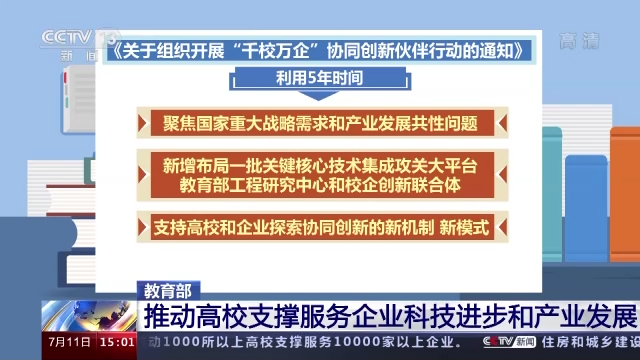 《通知》提出,利用5年时间,聚焦国家重大战略需求和产业发展共性问题,新增布局一批关键核心技术集成攻关大平台、教育部工程研究中心和校企创新联合体,支持高校和企业探索协同创新的新机制、新模式,根据龙头企业、专精特新中小企业和创新型中小企业等不同需求,开展不同形式的创新合作,实现精准对接,突破一大批关键核心技术和共性技术,强化企业需求牵引和市场化导向的知识产权布局,有组织推动1000所以上高校支撑服务10000家以上企业科技进步和产业发展。