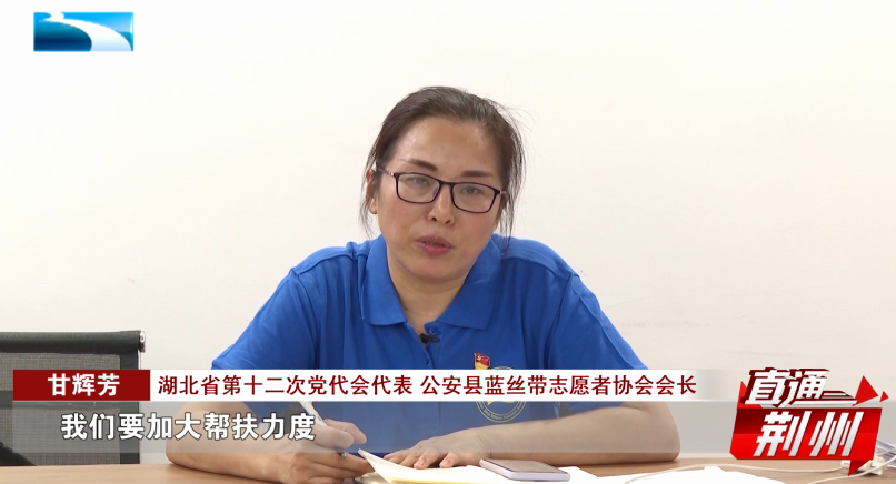 湖北省第十二次党代会代表,公安县蓝丝带志愿者协会会长 甘辉芳:“志愿者要有创新和突破,发挥志愿者作用,特别是脱贫户中有返贫致贫风险的,我们要加大帮扶力度。”