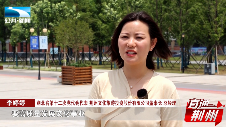 湖北省第十二次党代会代表,荆州文化旅游投资股份有限公司董事长、总经理 李婷婷:“全力打造文旅全产业链闭环服务,为游客提供全要素的服务,向全国展现我们荆楚文化特色。”
