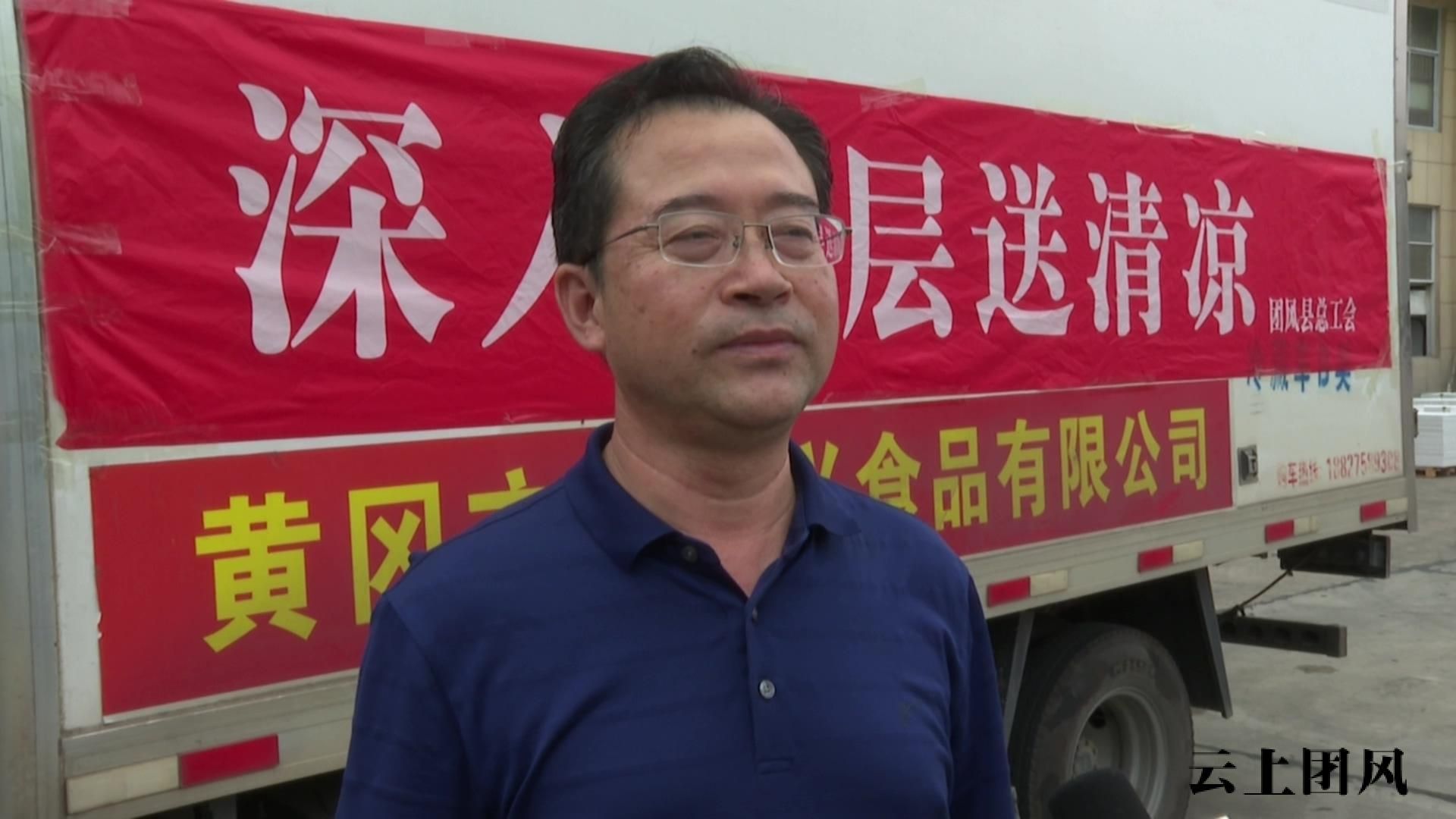 团风县总工会党组书记、常务副主席熊伯伦:“这次酷暑之际,我们县总工会开展“夏送清凉”活动,看望慰问奋战在高温岗位上的一线劳动者,为他们送上防暑降温物资和药品,确保奋战在高温一线的职工安全度夏、清凉度夏,切实维护了户外劳动者的安全健康权益,进一步加强我们工会组织和广大职工群众的紧密联系。”