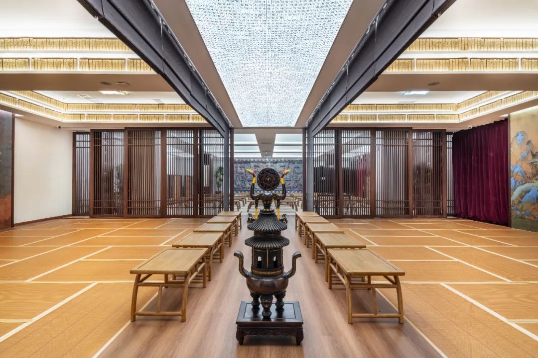 九典书房风格吸取古代书院特色,陈设充分展现先秦文化元素,在600平方米的空间内,设有图书展区、阅读区、文创区、楚宴品尝区、礼仪展演区等多个功能区,打造风格浓郁的古典文化交流空间。