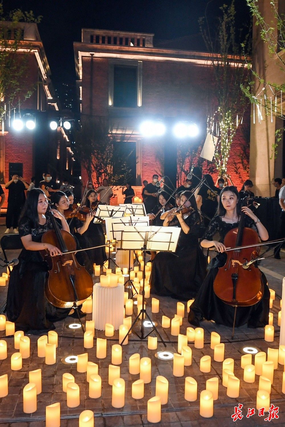 26日晚,汉口咸安坊,游人在欣赏烛光音乐会。长江日报记者史伟 摄