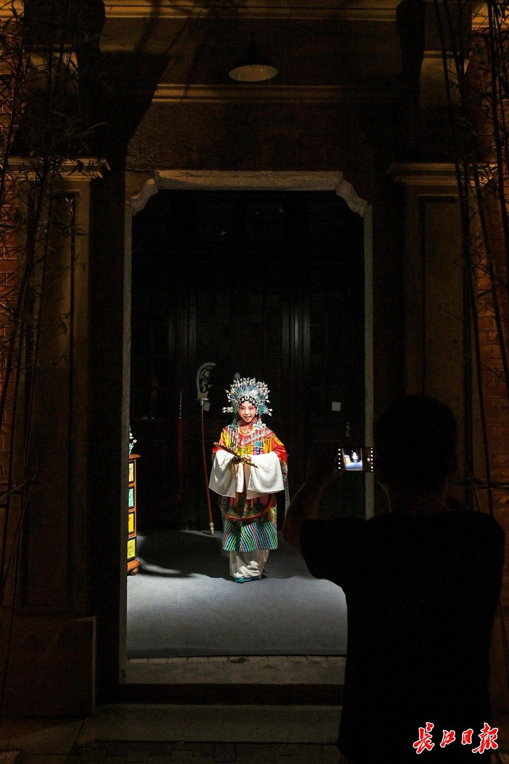灯光下,走过斑驳树影下的古建筑,推开古色古香的木门,门后是分别不同的六个场景:在里分入口首先见到的是陈伯华场景,陈伯华第六代嫡传弟子、优秀汉剧演员胡雅琪正在现场演绎汉剧戏曲,袅袅之音沿着百年里分越传越远。