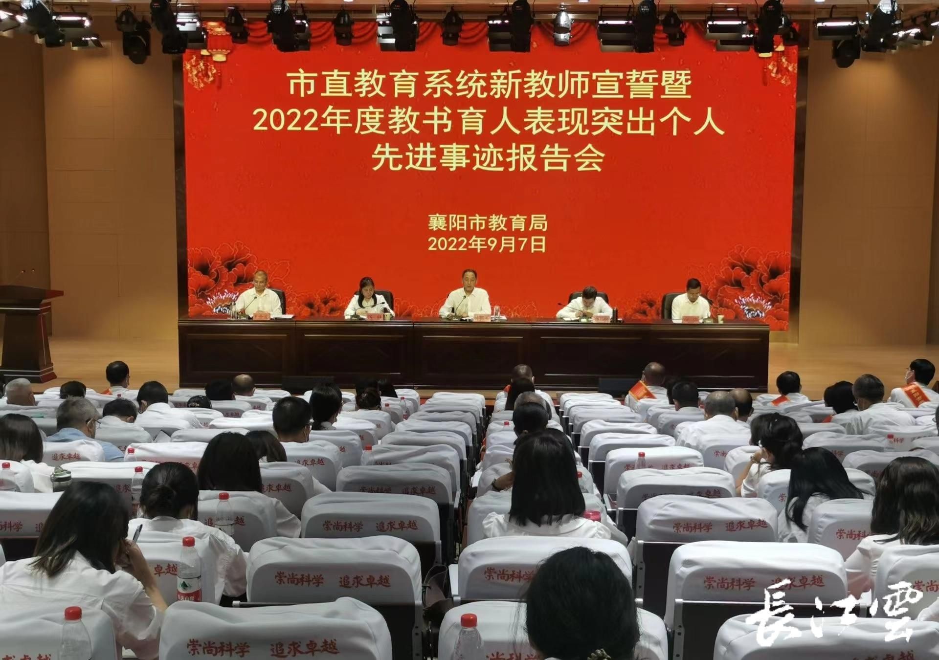 9月10日将迎来第三十八个教师节。9月7日,襄阳市直教育系统新教师宣誓仪式暨2022年度教书育人表现突出个人先进事迹报告会在襄阳四中举办。当日参加报告会的除了襄阳市教育局相关负责人、谢谢市直学校(直属二级单位)主要负责人外,还有襄阳市直教育系统新入职的117名在职在编教师、2022年襄阳市直教育系统引进的34名高层次紧缺专业人才、2022年襄阳市直教育系统27名获通报表扬的教书育人表现突出个人。