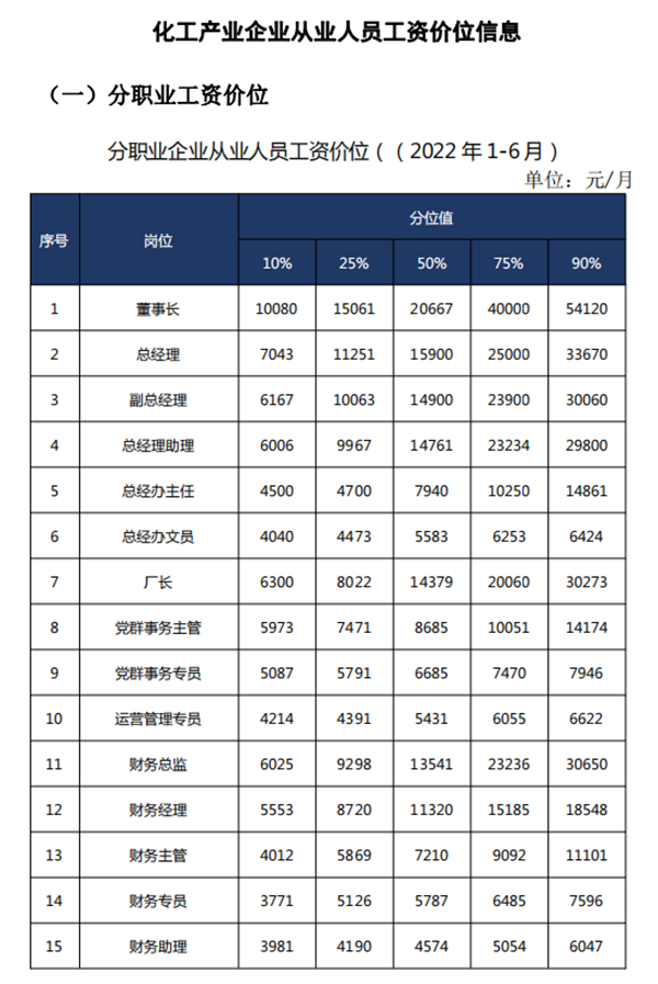 湖北广电融媒体记者今天(9月14日)从宜昌市人社局了解到,为有效引导宜荆荆都市圈化工产业企业合理确定和提高工资水平,建立健全薪酬水平正常增长机制,加强化工行业用工指导,宜昌市人社局聚焦宜荆荆化工优势产业,抽取宜荆荆有效样本53家企业、14720名从业人员,开展了宜荆荆都市圈化工产业企业工资专项调查,并发布了2022年(上半年)化工产业薪酬,涉及不同岗位从业人员工资价位152个,主要从以下四个方面规定: