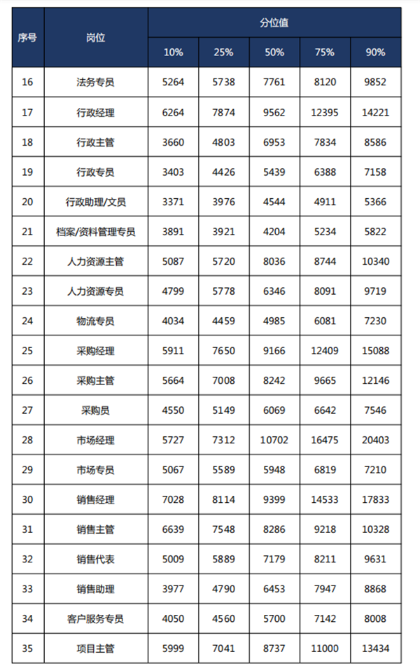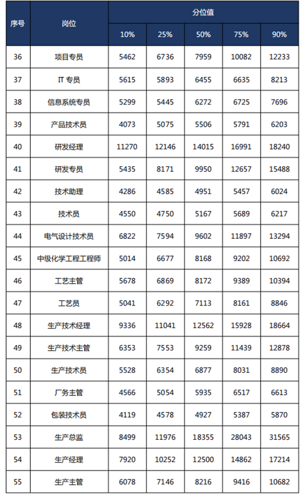 研发设计岗位领跑。从工资价位平均数来看,除去管理岗位外,研发专员排第一,平均工资为10340元;电气设计技术员排第二,月平均工资为9842元;质量控制技术员排第三,月平均工资为9474元。