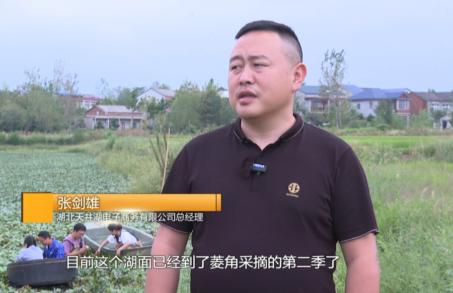 立秋之后是菱角采摘的时节,在浠水县散花镇天井湖村,湖北天井湖农业科技服务有限公司种植的6000多亩菱角进入了成熟季。记者在现场看到,成熟的菱角在水面若隐若现,两艘小船漂在湖面上,公司的电商团队正在湖面上进行直播卖货。据湖北天井湖电子商务有限公司总经理张剑雄介绍,每个工人一天可以采到350斤左右的菱角,通过清洗分拣之后,在电商平台上出售,每天的销售单量大概有5000到10000斤。