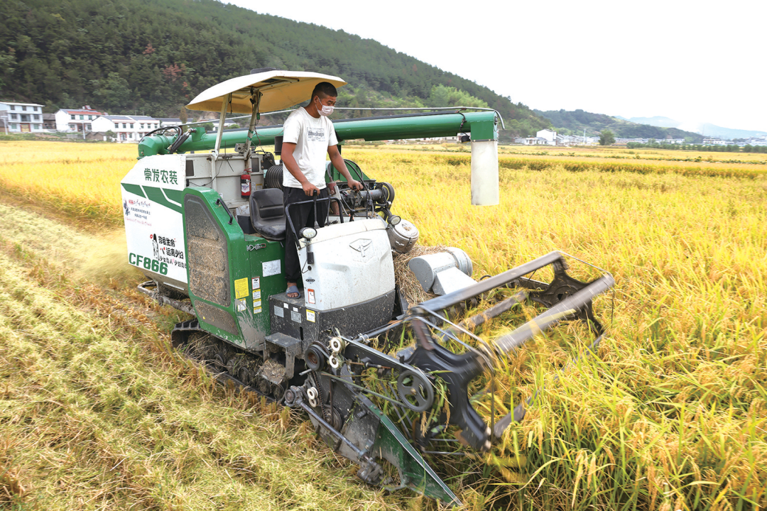 稻田边角区域则进行手工收割