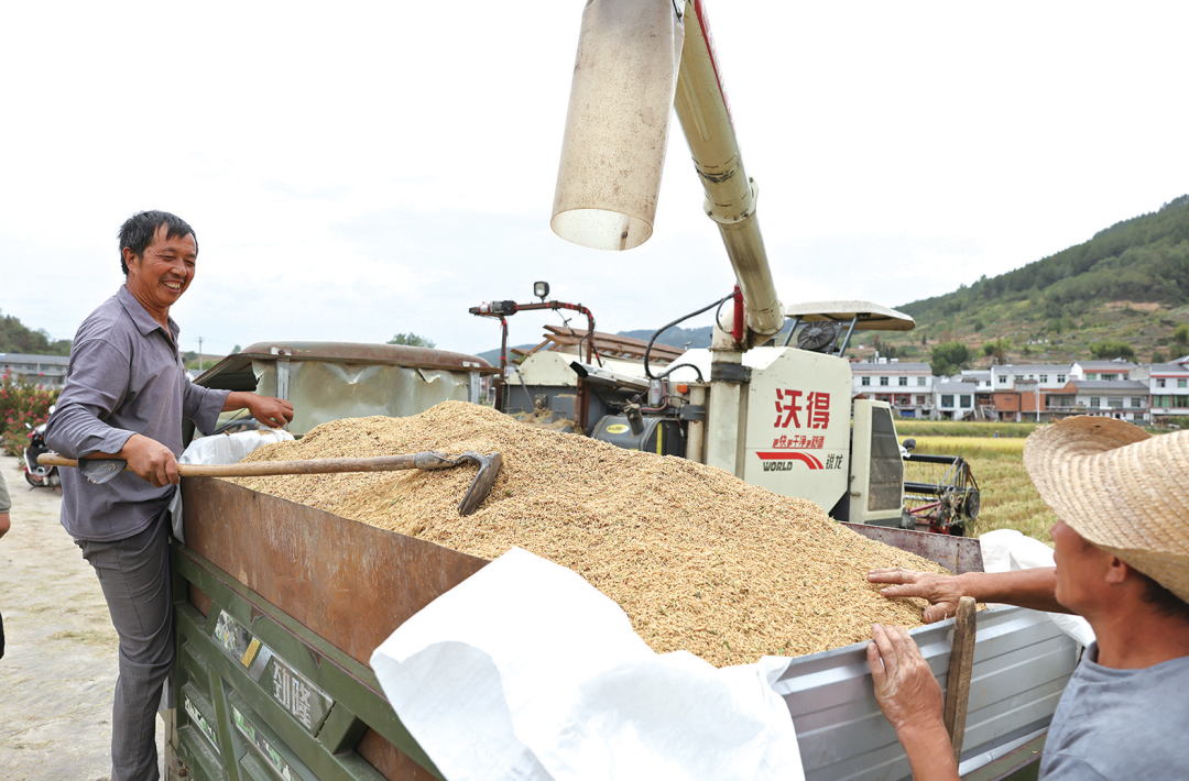 看金秋稻谷黄 田间收割忙