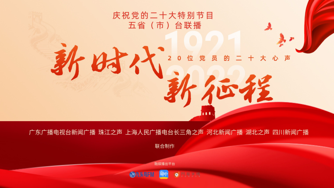 广东新闻广播、 珠江之声等五省(市)台联合制作播出庆祝党的二十大特别节目《新时代 新征程——20位党员的二十大心声》