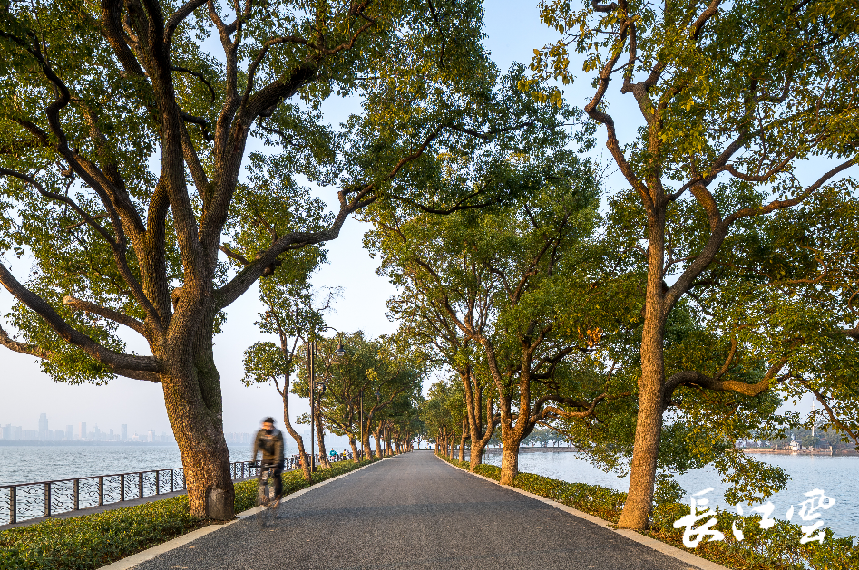 深秋时节,天微微凉,漫步武汉东湖绿道,游人依旧如织。