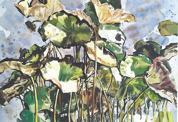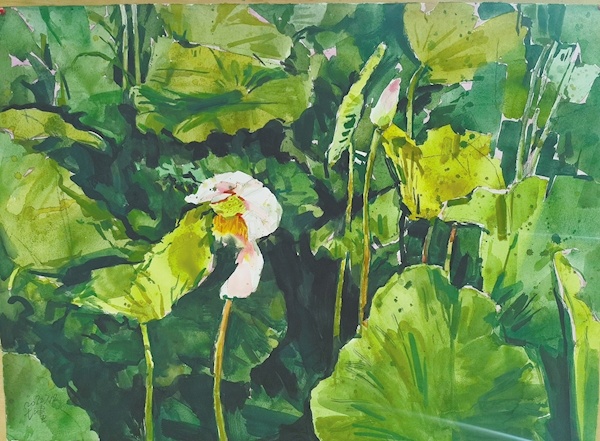 沈祥胜先生水彩中的宏观世界,与他深厚的艺术修养是分不开的,他博览群书,精通中外艺术史论,特别是对当今世界画坛的艺术流派,都有深入的研究。他的画有中国传统的文化根基,又有世界当代的形式时尚,从他大气豪放、委婉含蓄的水彩画意境中,都可看出他那诗人般的文心和观照当下多元审美的胸怀。他水彩画中的微观世界,是与他思维缜密,情感细腻,善于观察事物的本质能力分不开的,与他扎实的绘画功底和各种独门绝技也是分不开的。