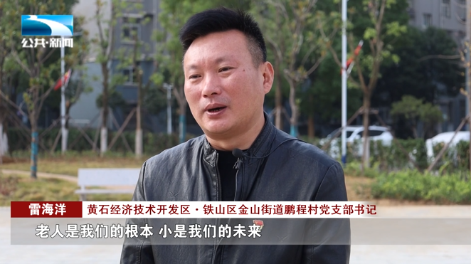 黄石经济技术开发区·铁山区金山街道鹏程村党支部书记 雷海洋:“老人是我们的根本,小是我们的未来,我们社区老人比较多 600多(人),老人(需求)解决好了,我们社区工作也好干了,小的搞好了,我们也有未来,所以一老一小是我们社区为人民服务的宗旨。”