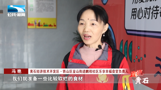 黄石经济技术开发区·铁山区金山街道鹏程社区乐享幸福食堂负责人 冯艳:“比如说他们要是说饭硬了,我们就煮烂一点,有的牙口不好,我们就准备一些比较软烂的食材,菜品多准备一点,争取做到符合大多数人的口味。”