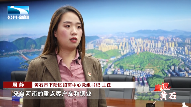 黄石市下陆区招商中心党组书记 主任 周静:“来自河南的重点客户友和铜业,因为物流距离较远、运输成本较高,急需在华中铜业附近投产,得知这个信息之后,我们迅速启动对接和调研,华中铜(业)也对友和铜业落户下陆给予了相应的支持,最终该企业落户在了我们下陆区。”