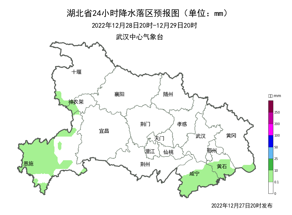 鄂西南、鄂东南阴天有小雨,高海拔地区有雨夹雪或小雪;其他地区阴天。