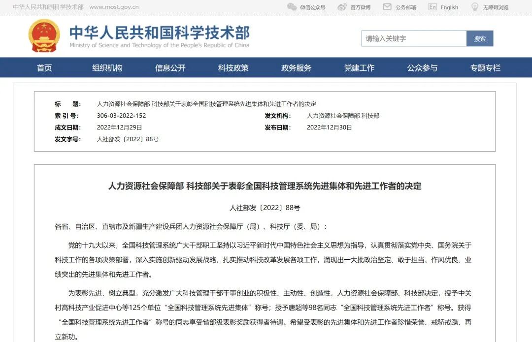 日前,人力资源社会保障部、科技部发布《关于表彰全国科技管理系统先进集体和先进工作者的决定》,授予125个单位“全国科技管理系统先进集体”称号。东湖高新区科技创新和新经济发展局上榜,为武汉唯一获评单位。