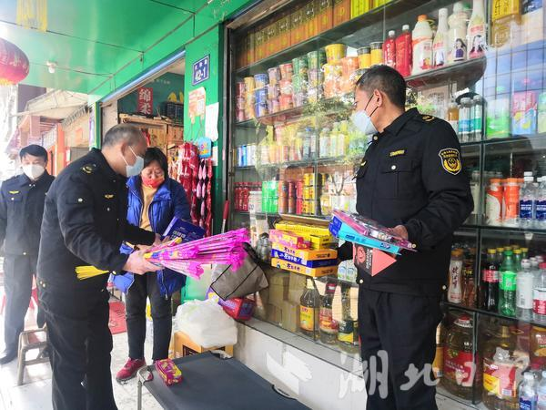 自元旦以来,仙桃市应急管理局联合该市公安局、消防救援大队、市场监督局、乡镇派出所等相关单位开展烟花爆竹打非治违专项行动,对全市乡镇、集镇开展地毯式排查,详细检查烟花爆竹零售门店的安全条件、进货渠道、消防设施、安全存放等情况,对非法销售烟花爆竹的行为依法依规严厉查处,把好烟花爆竹安全关,确保人民群众过一个平安年、幸福年。