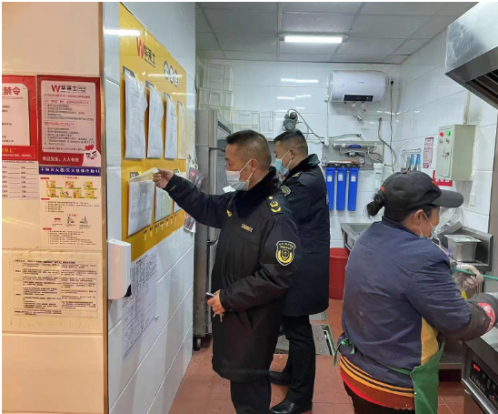 鄂州市市场监管部门执法检查人员深入大中型餐饮服务单位、餐饮连锁企业等重点单位,以凉菜、自助餐饮等为重点品种,开展食品安全风险隐患排查检查,督促餐饮服务提供者按要求严把食材采购关、加工制作关、环境卫生关、餐饮具清洗消毒关等关口。