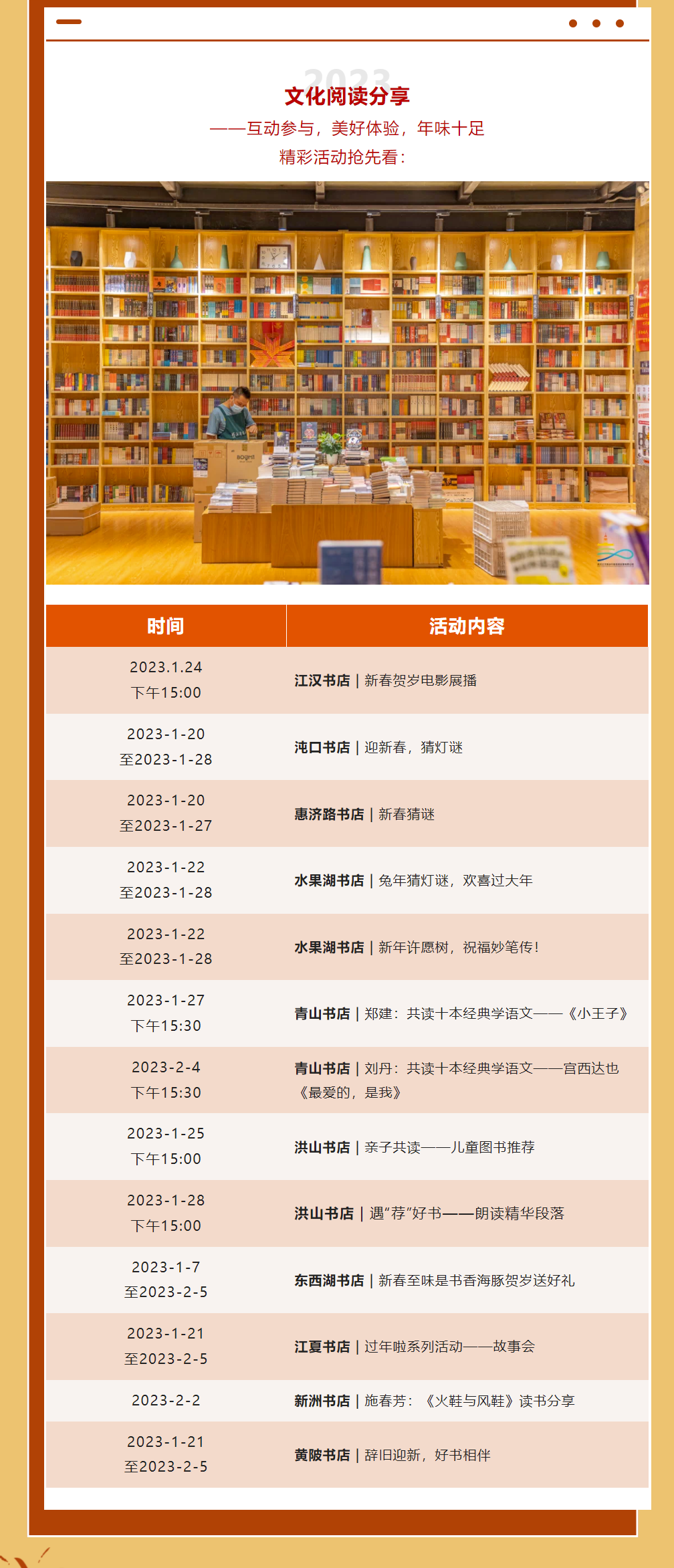 收藏!2023武汉书香新年主题文化活动安排出炉