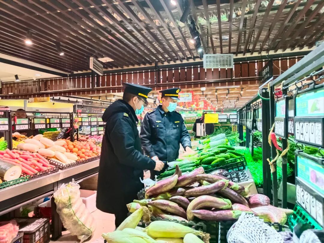 孝感市市场监管部门对辖区内超市、农贸市场等重点经营场所开展节前食品安全检查,重点检查从业人员健康体检状况、食品保质期、经营场所卫生等,让群众买得舒心、吃得放心。