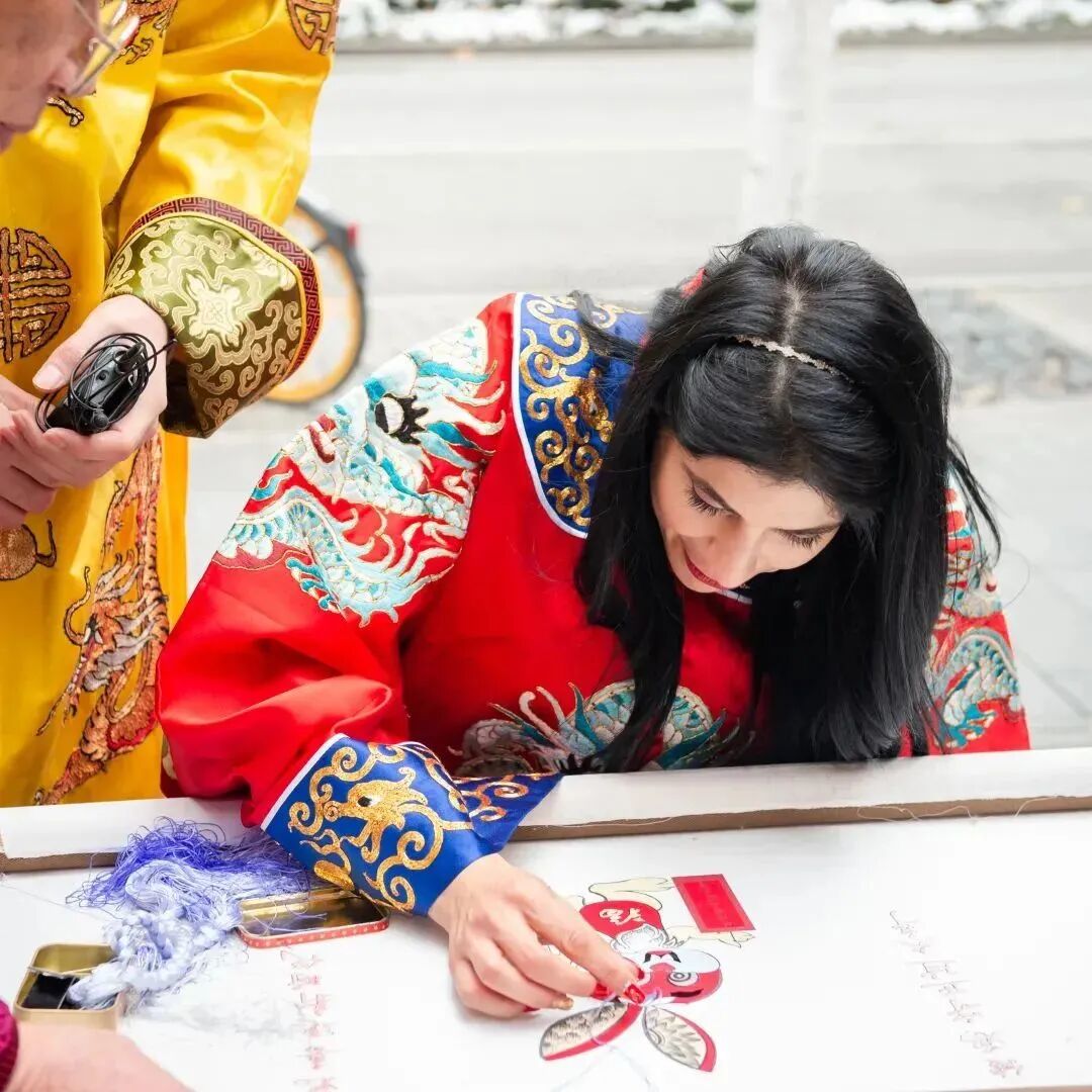 苏晨还不禁赞叹道,“汉绣的做工很精致,面料很柔软舒适。我正在绣的兔子使用了非常鲜艳的红色,这在新年有着非常好的寓意。”