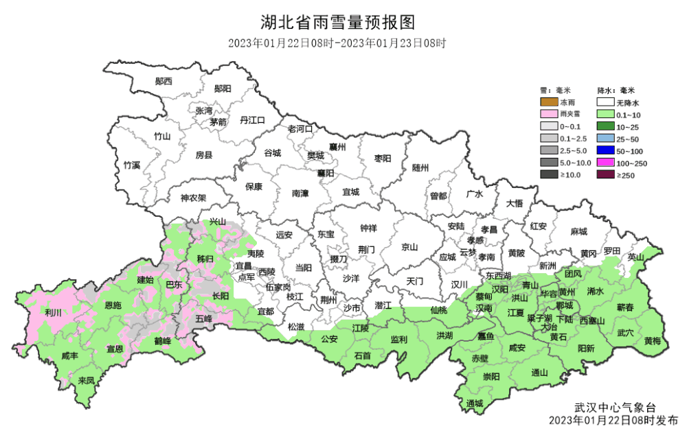 鄂西南、鄂东南零星小雨转阴天,其中鄂西南高山地区有雨夹雪或小雪;其他地区阴天到多云。早晨省内局部有雾。