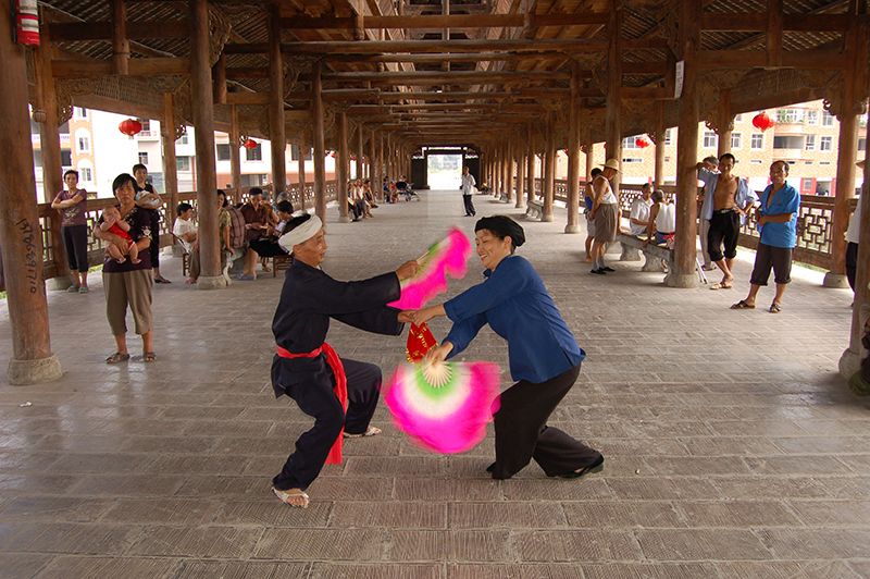 摘要: "耍耍"的原型是民间仪式中端公敬神还愿诉求上苍,驱疫消灾,播福于民,以求得风调雨顺,无痛无灾,人寿年丰的法事。且将祈求之意以歌唱之,并将敬神过程加以舞蹈化。 现代"耍耍"作为恩施市宣恩县城乡最具广泛性、群众性的传统的民间曲艺形式,主要活动于喜庆新年、男婚女嫁、添丁满月、祝寿做生等场合。表演风格以二人组合,一男一女,女扮男装,唱跳融合,动作滑稽诙谐,唱腔明快优美,多有传统唱段,又可即兴编唱,人物可进可出,一人多角,唱词可长可短,一领众和,营造出一种说唱并茂,歌舞融合的氛围,加以击乐伴奏,场面十分热烈,纯属“踏歌耍唱”类的曲艺品种。