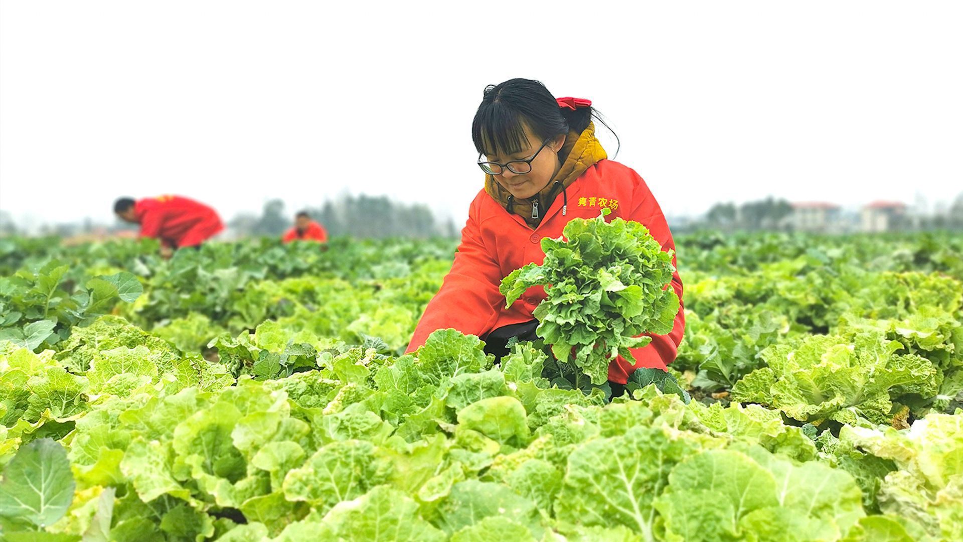 25公里外的吴城村,在隽青家庭农场领头人程艳夫妇的带领下,村民正在基地采收白菜和菜薹,几个小时后,这些新鲜蔬菜将会出现在崇阳和咸宁的各大商超卖场。2020年,程艳带着技术回到家乡当起了“新农人”,眼前这片1000余亩的家庭农场正是她和周边村民一起,共同缔造的“绿色王国”。