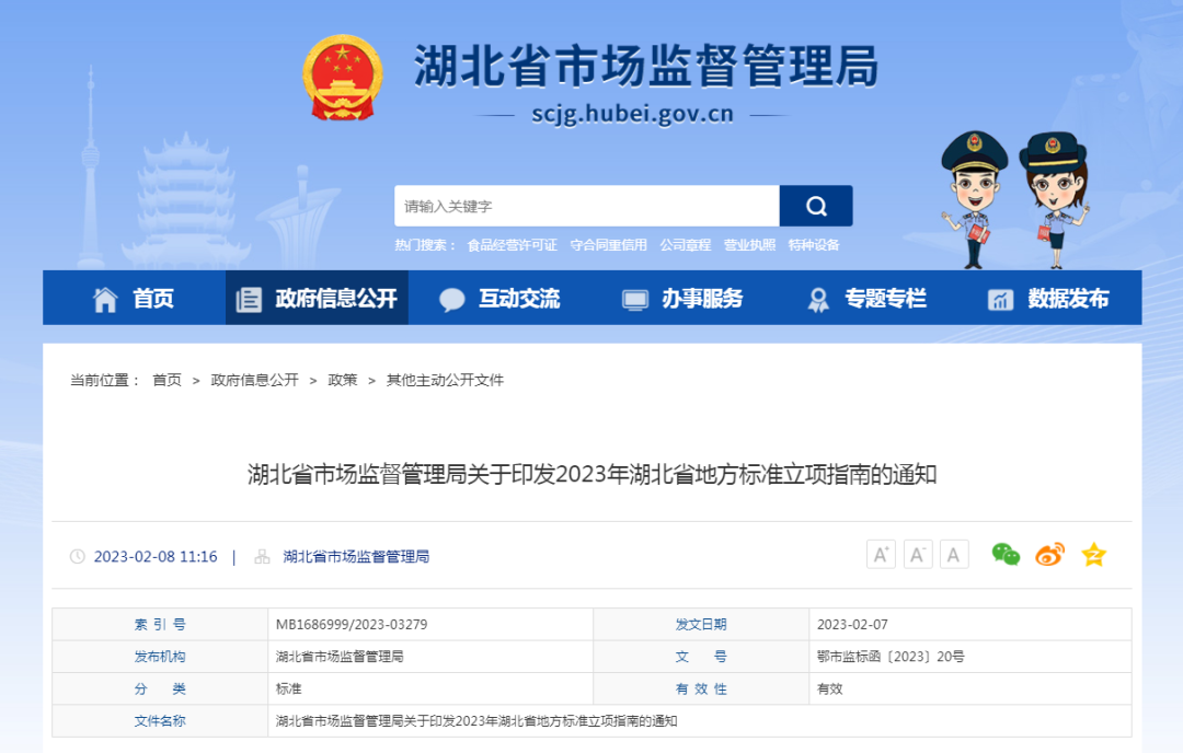 为进一步发挥标准化在推进省域治理体系和治理能力现代化中的基础性、引领性作用,推动落实《国家标准化发展纲要》(以下简称《纲要》),加快建立服务湖北经济社会高质量发展的标准体系,近日,湖北省市场监督管理局印发《2023年湖北省地方标准立项指南》,明确了今年地方标准立项重点领域,提出了相关申报要求。社会团体、企事业单位以及公民可根据申报要求向省市场监管局提出立项建议。