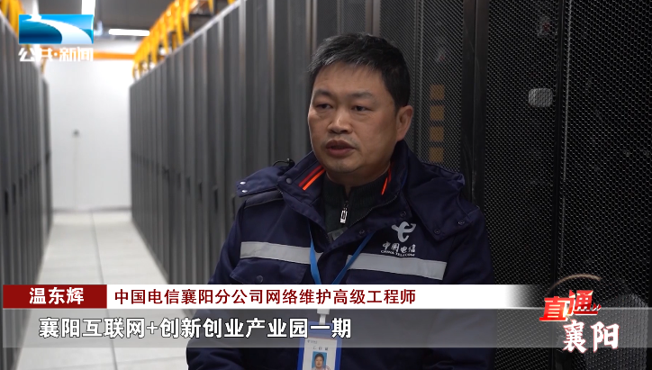 中国电信襄阳分公司网络维护高级工程师 温东辉:“襄阳互联网+创新创业产业园一期,已经装配了2200个标准网络机柜,二期容量是一期的2倍,可以直达国家骨干网,互联网出口带宽达到3000G,数据存储容量相当于7200万人一年的存储量。”